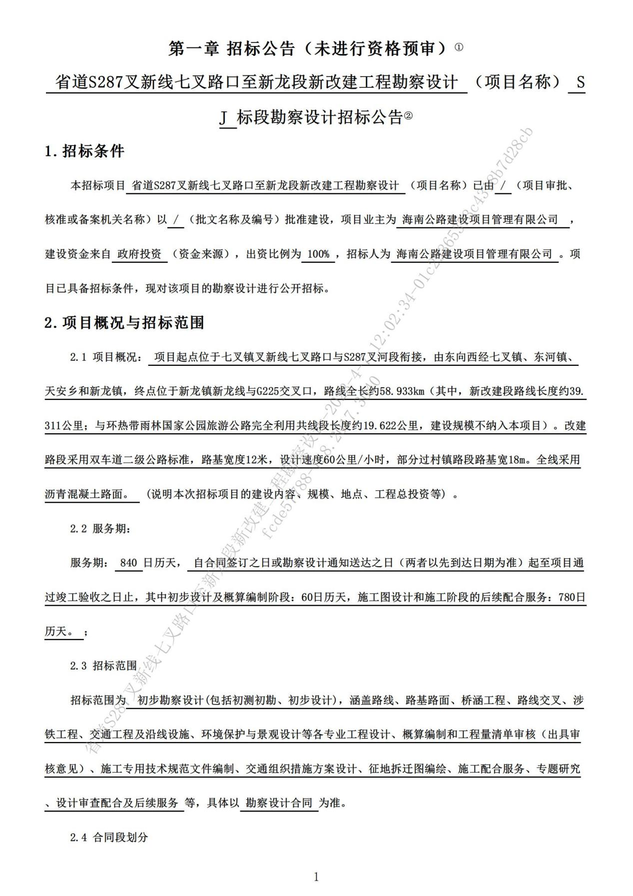省道S287叉新線七叉路口至新龍段新改建工程勘察設(shè)計招標(biāo)公告